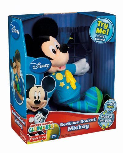 Going to sleep couldn't be more fun than with your favorite bedtime friend Fisher-Price Bedtime Rocket Mickey Mouse! Mickey is in his sleepytime pajamas - are you ready for bed with your favorite pal? Press his tummy to hear bedtime music & phrases. Hear rocket sounds as the rocket on Mickey's pajamas lights up!